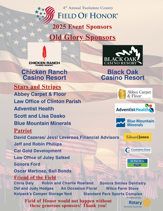 Welcome to the Sonora Sunrise Rotary Club 25070 in District 5220, located in Sonora, California, USA. We invite you to take a look around our website and social sites to find out more about our club and Rotary!